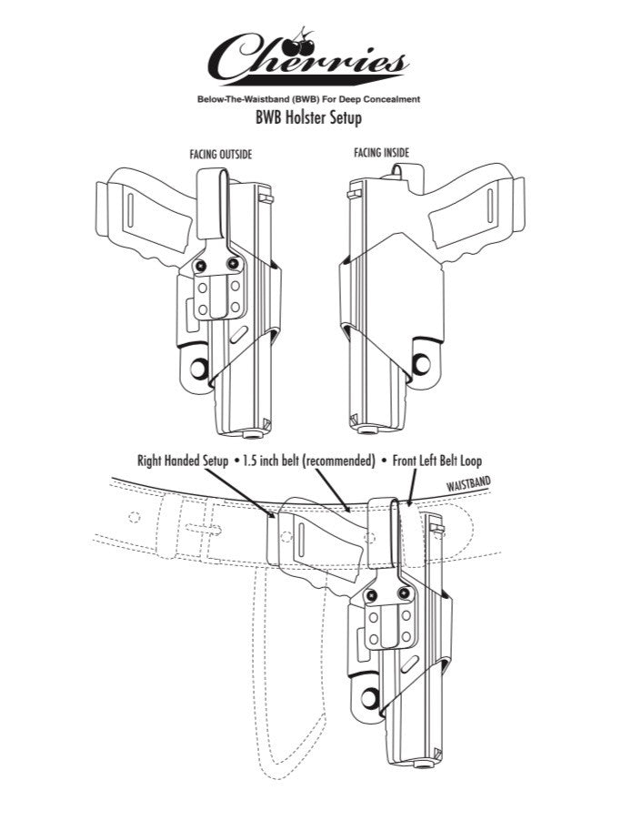 Introducing our newest Multi-Fit Deep Concealment Holster. The Cherries Multi-Fit Deep Concealment Holster (Patent Pending) is the next evolution of concealed carry holster. It fits over 19 of the most popular handguns sold today and is the World's First Appendix Below-The-Waistband (A-BWB) holster designed for deep concealment with total retention and a fast draw. Improved upon our original best-selling Deep Concealment BWB Holster, our latest GEN-3 is leaner, meaner and even more adjustable and is now fully injection-molded.